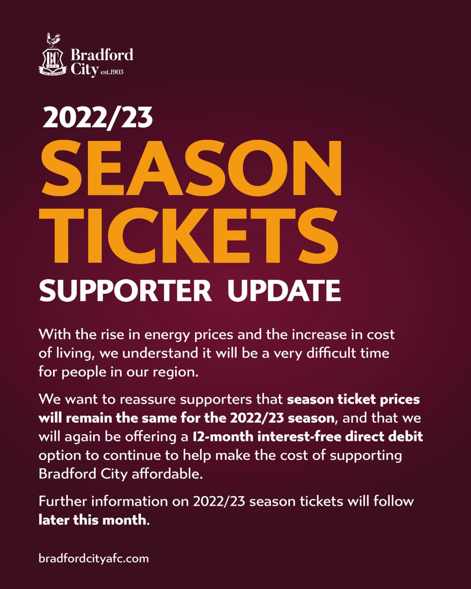 | Bradford City Afc On Twitter Information On 2022 23 Season Tickets Full Details To Be Confirmed Later This Month Bcafc Https T Co Ey2nto5g3h Twitter |